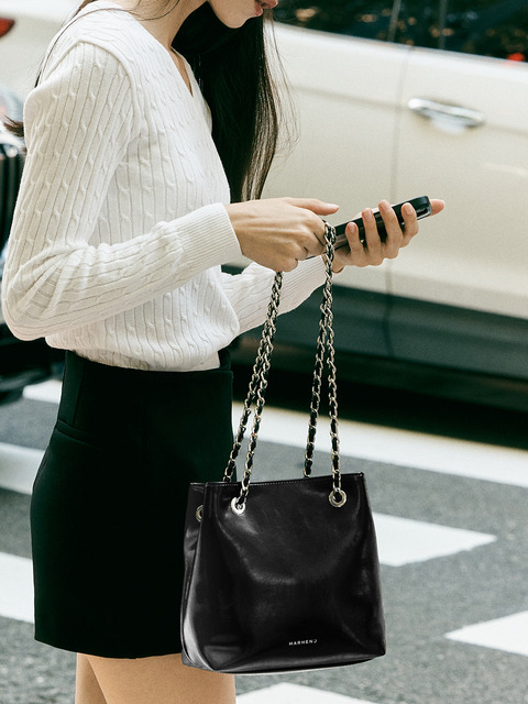 [마르헨제이] 칸 트위드 체인 버킷 크로스백_BLACK