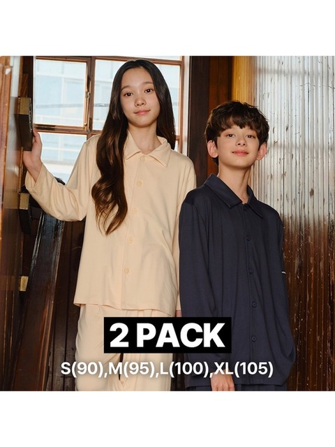 [마밤오가닉] MSMV 2PACK 피치기모 빅사이즈 주니어 잠옷 내의 라운드세트_10COLORS