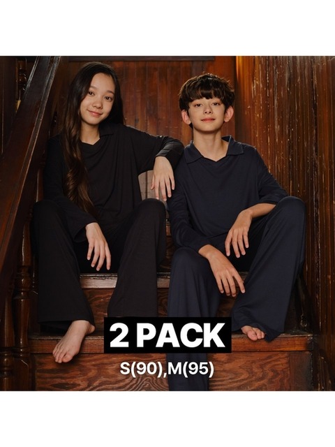 [마밤오가닉] MSMV 2PACK 피치기모 빅사이즈 주니어 잠옷 내의 카라넥세트_6COLORS