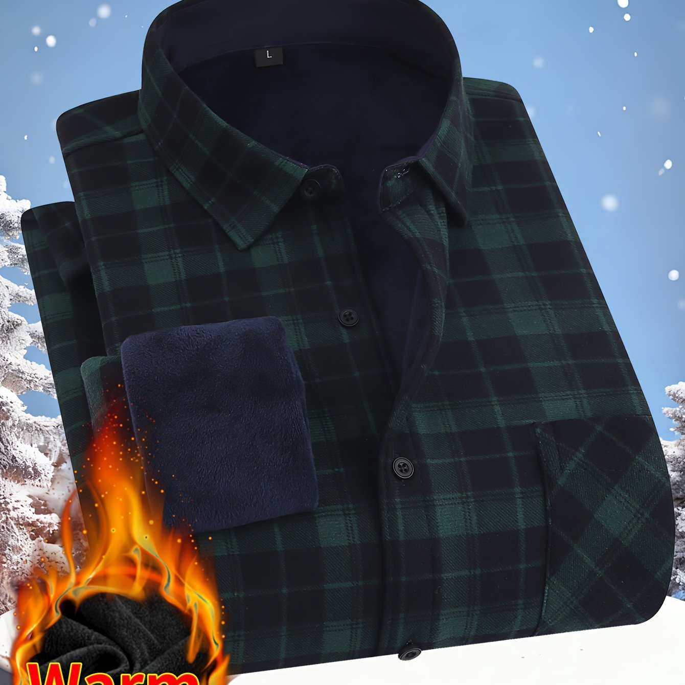TEMU 남성용 보온 겨울 셔츠 - 무거운 체크무늬 드레스 셔츠, 비대칭 칼라, H 사이즈 레귤러 핏 긴팔 버튼업, 추운 날씨용 (블루/레드/블랙/탄) - 손세탁 가능한 사무실 및 정장