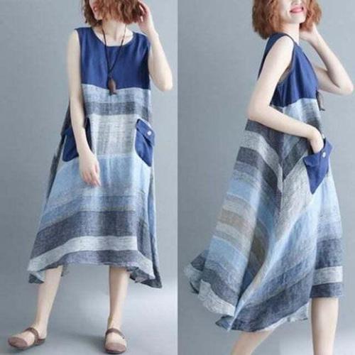 여성 시원 편안 면 마 소재 오버핏 A라인 롱 원피스 캐주얼한 디자인 봄 여름 가을 매력 반팔 스타일 활동적 일상 생활 안성맞춤 새로운 시즌스타일링