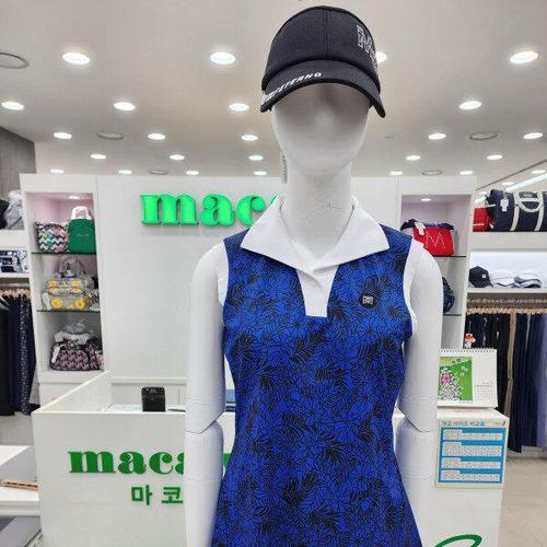 [마코] (여성)몬스테라 패턴 민소매 카라 티셔츠_MLW2TN04