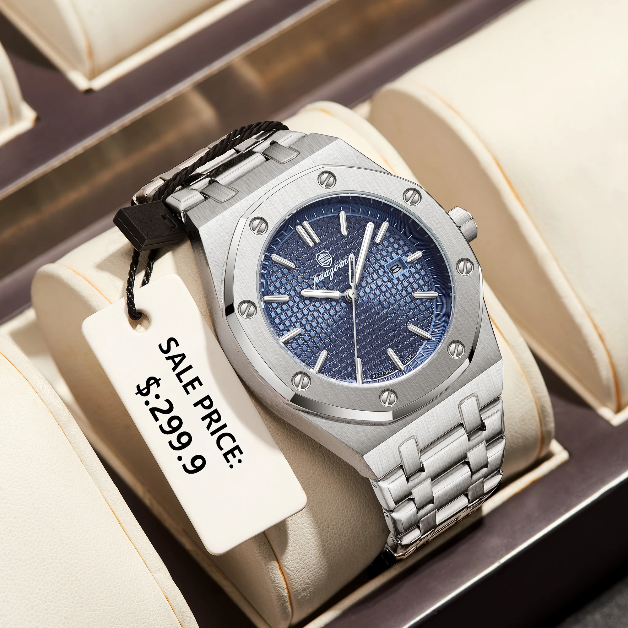 PAAZOMU 럭셔리 비즈니스 남성용 손목시계 방수 발광 날짜 표시 남성 시계 스테인리스 스틸 패션 쿼츠 시계 남성용 시계