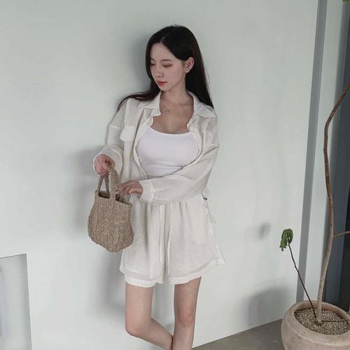 [다잇템]여성 마원단 롱슬리브 비침 투피스 세트