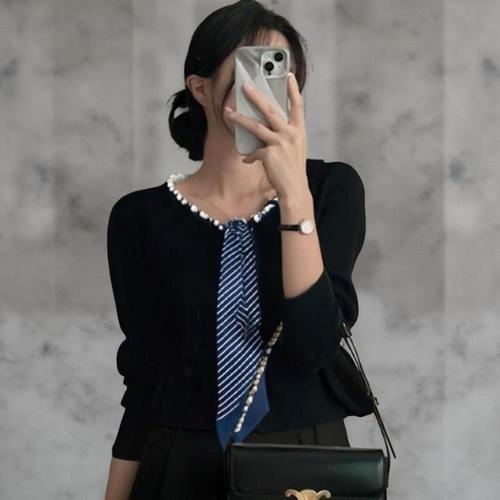 [다잇템]여자 반다나 마후라 스웨터 단추 카라티 가디건