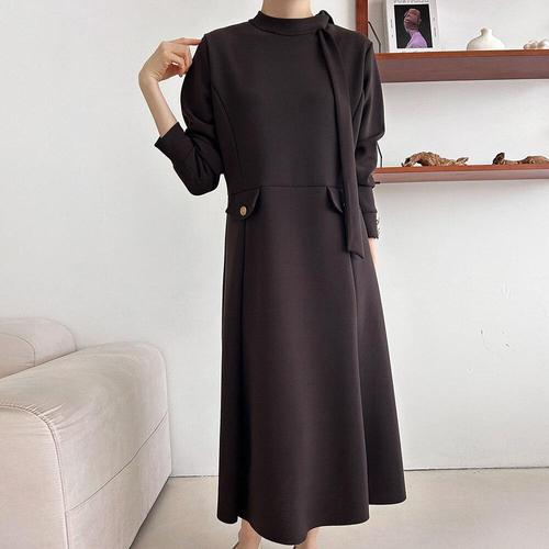 [다잇템]여성 들러리룩 컷아웃 마후라 보우 FW 롱드레스