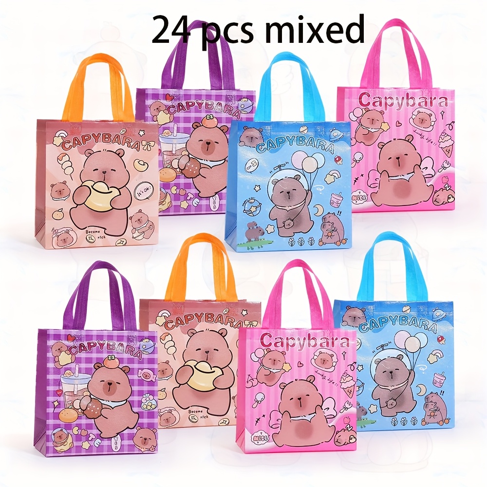 TEMU 24pcs 카피바라 테마 선물 가방 - 귀여운 카피바라 선물 가방, 동물 테마 파티, 결혼식, 생일 테마 파티 선물 가방용 손잡이