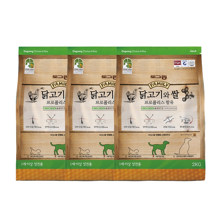 도그랑 훼미리 닭고기와 쌀 어덜트 2kg x 3포 6kg 강아지 사료