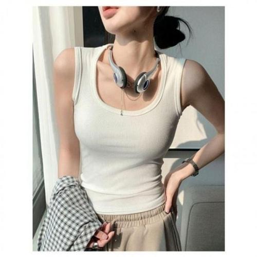 여성 탑 망고 나시 크롭 티셔츠 슬림핏 민소매 WFLQADX