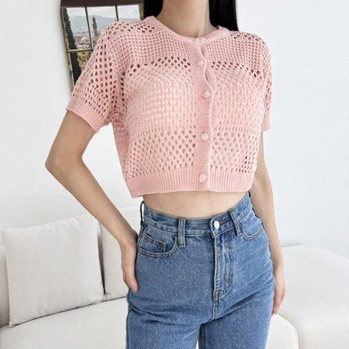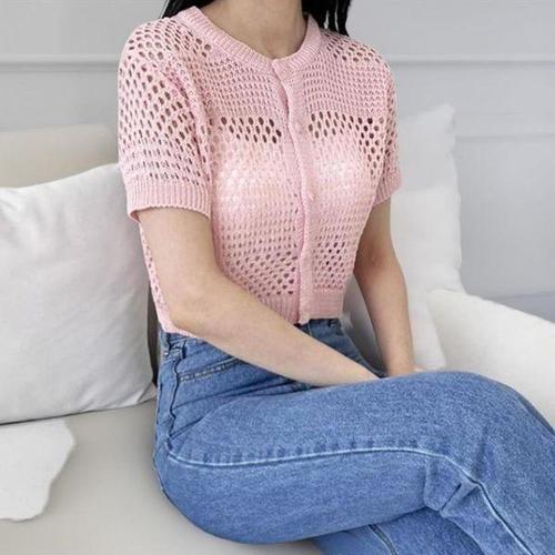 [다잇템][다잇템] 여성 위빙 펀칭 일상용 비침 망사 짧은 스웨터 카디건_22862490_588872