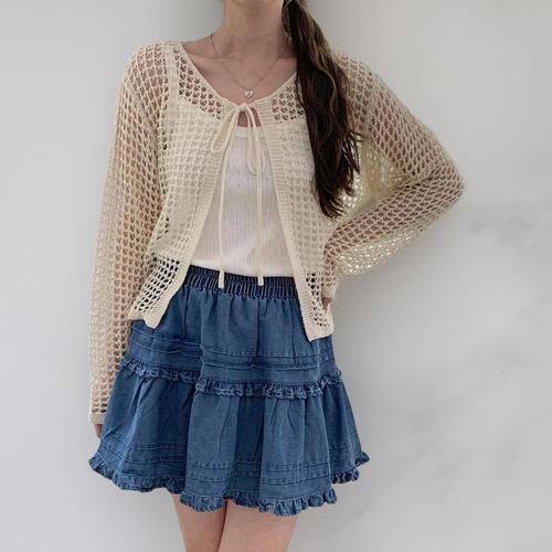 [에이치플러스몰]망사 가슴끈 데일리 가디건 숏