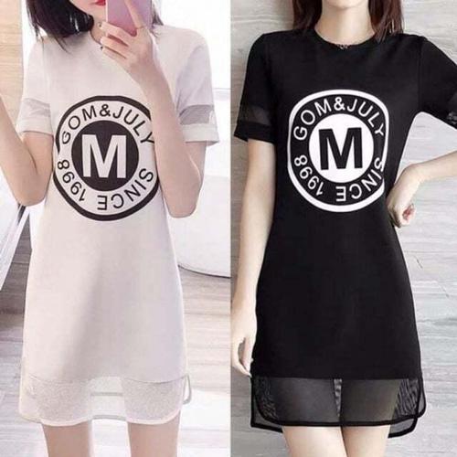 [셀럽하우스]밑단 TIDM7087 영문 망사 캐주얼 여자원피스 날씬 스포티룩 여