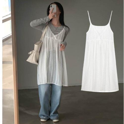 [셀럽하우스]민소매타입 PJSB6708 더블레이어 화이트 망사 망사원피스 원피