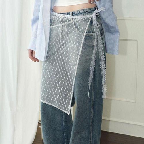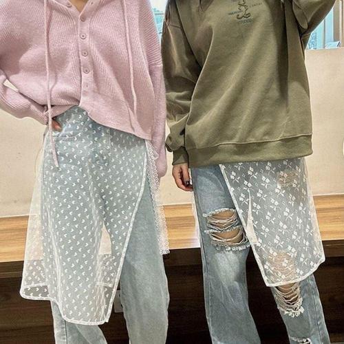 레이스 망사 반스커트 여성 레이어드 데님코디 속치마속치마 랩스커트 시