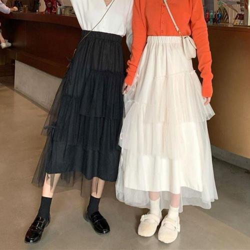 [오노마] ONM 여성 귀여운 망사스커트 캉캉 롱스커트 레이스스커트