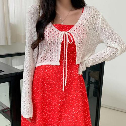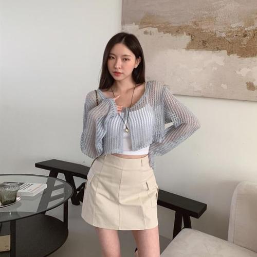 [옷자락]여자 스웨터 숏가디건 탱크 빅사이즈 망사 롱슬리브 얇은 가디건