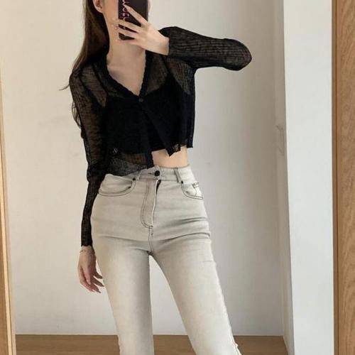 [다잇템_패션]여자 SS 망사 비침 롱슬리브 탱크 V넥 가디건