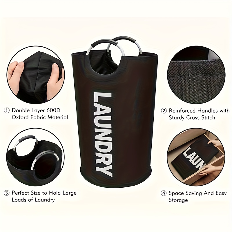 TEMU 소프트 핸들이 있는 초대형 빨래 바구니 - 접이식, 다기능 수납용품, 욕실, 세탁실, 발코니 및 기숙사용, 90.02L 용량 블랙 패브릭 침실 정리함, 기숙사 필수품, 캐주얼 스타일, 직사각형 모양, 튼튼한 구조, 대학생, 작은 공간 솔루션, 빨래 바구니, 높은 빨래 바구니,세탁용 바구니,뚜껑이 있는 빨래통,세탁 액세서리,빈티지 더러운 빨래 바구니