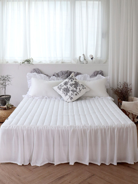 [자요]누빔 스커트형 레이스 침대 매트리스커버