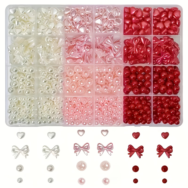 TEMU 750개 DIY 멀티컬러 하트 & 리본 비즈 액세서리 만들기 키트 - 컬러 코드 아크릴 비즈와 사전 제작된 리본 비즈, 목걸이, 팔찌, 폰 체인 액세서리용 - 발렌타인데이, 생일 선물
