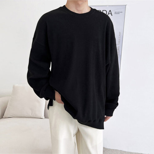 TEMU 남성용 일본 스타일 오버사이즈 크루넥 스웨트셔츠 - 부드러운 플리스 풀오버, 미니멀 일본 텍스트 프린트, 루즈핏 긴소매 스웨터, 데일리 & 포멀, 캐주얼 웨어, 다용도 의류, 스트리트웨어 스타일, 튼튼한 구조