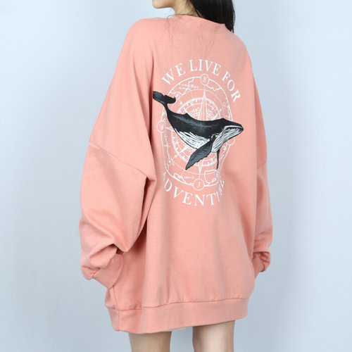 파라노말샵 / (빅사이즈) 4색 고래 라운드 오버핏 맨투맨 커플티 남