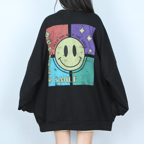 파라노말샵 / (커플티) 4색 스마일 라운드 오버핏 맨투맨 빅사이즈