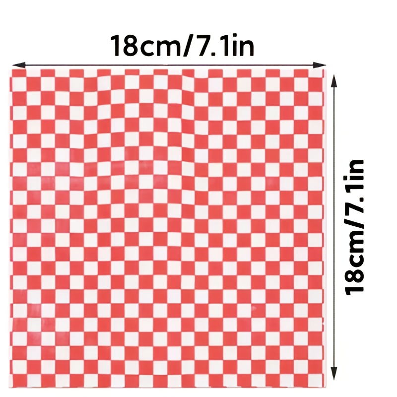 TEMU 음식 포장용 빨간 체크 무늬 방유지 종이 100매, 기름 및 지방에 강함, 치즈 샌드위치, 튀김기 라이너, 햄버거, 베이킹 제품 및 기타 기름기 있는 물품을 담은 패스트푸드 바구니용 라이너로 적합