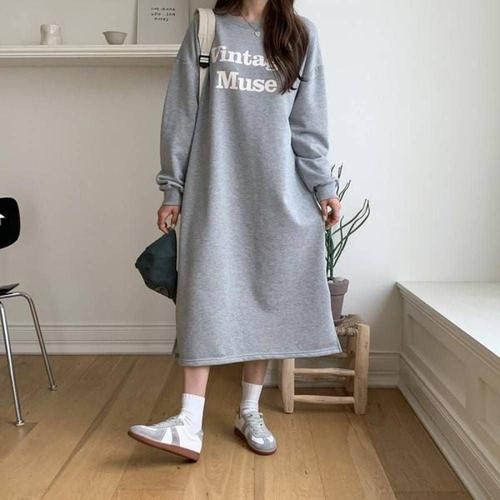 온나핏 여성 셔츠 하객 롱니트 라운드넥 롱원피 WFKOIOR