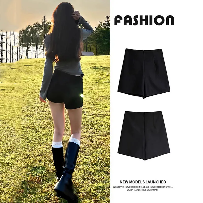 시크 숏츠 여성 벨트 한국 솔리드 버튼 사이드 슬릿 A라인 스트릿웨어 패션 스커트 시크 하라주쿠 여름 루즈 팬츠