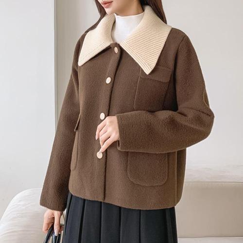 [옷자락]여자 투웨이 카라넥 멀티포켓 부클 니트 가을 숏 코트