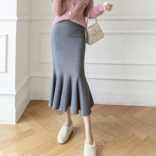 [셀럽하우스]여자 OVBP9841 겨울 치마 밴딩 머메이드 니트 롱스커트 여성 플