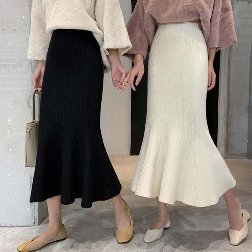 [셀럽하우스]밑단수술 IQIV4297 베이직 머메이드 니트스커트 멕시롱 올데이