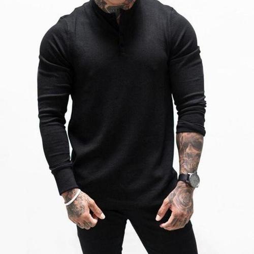 [셀러허브_여성트랜드패션]머슬티 남성 심플 라운드티 골지 긴팔 라운드넥 빅사이즈 단추 티셔츠 남자
