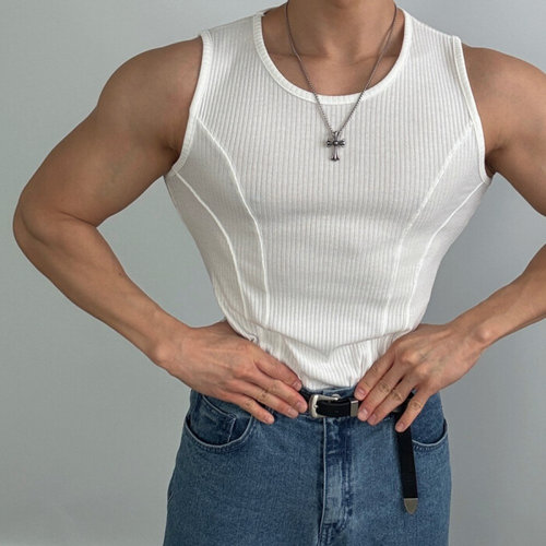 베이직바이블 남자 골지 나시 민소매 고탄력 스판 머슬핏 짐웨어 탄탄한 티셔츠