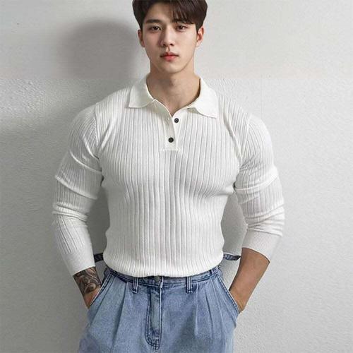 [모로엠]남성 신축 머슬핏 카라 긴팔 상의 ON-KAA-QWFFWTFI