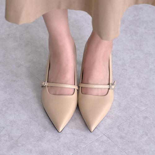 엘럽 여자 스트랩힐 앙고라 펌프스 살색톤 단화 프렌치 스틸레토 메리제인 슈즈 원템5