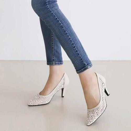 [셀러허브_여성트랜드패션]ONM 레이스 시스루 메쉬 소재 슬림 쉐입 앞코 펌프스 구두