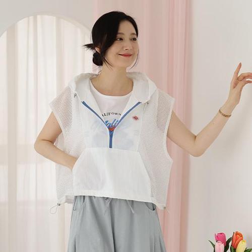 [웬디즈갤러리]매쉬 후드 베스트 /여성 여름 데일리 운동 산책 RVT107