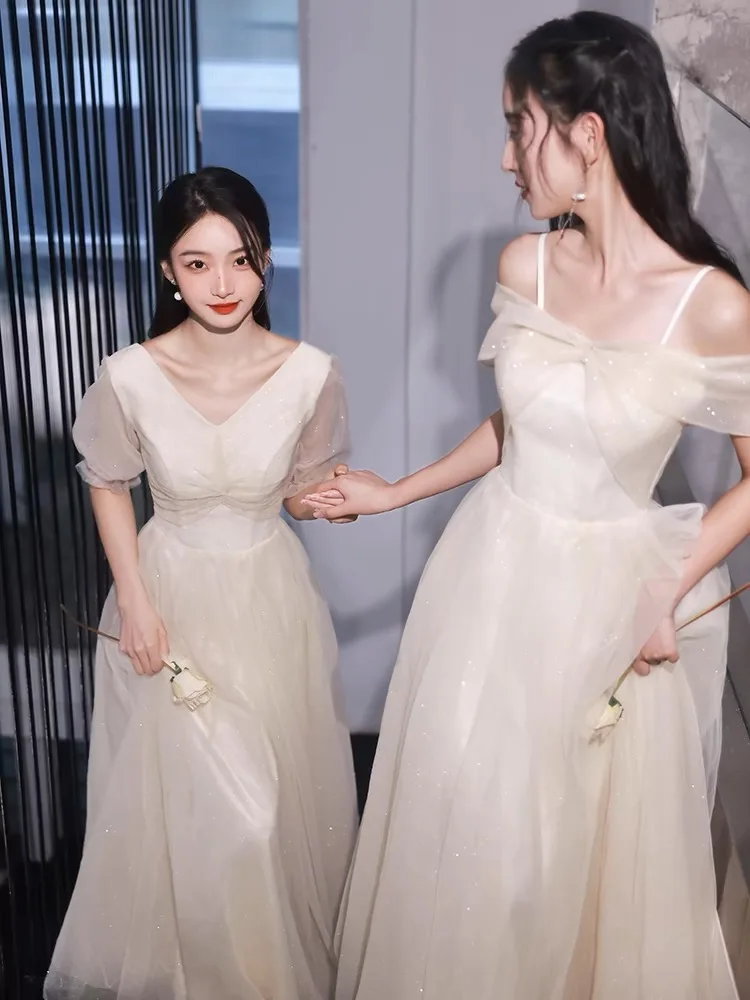 우아한 블루 브라이드메이드 드레스 이브닝 가운 스트랩 허리 조절 슬림핏 프린세스 스커트 성인 행사 및 시험용