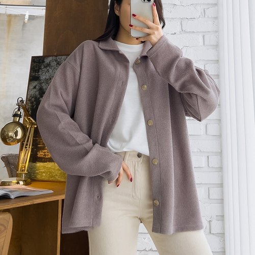 H스타일(MZ)리브드카라셔츠 봄 남녀공용 남방 니트 티셔츠 루즈핏 빅사이즈