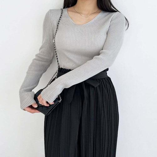 정상가 59000원ㅣ페미닌 V넥 골지 레이어드 니트 가디건 (GOACK005D)