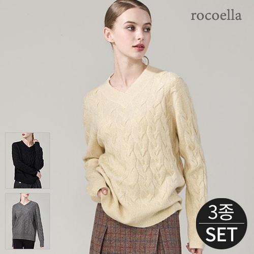 [로코엘라] 로에드 메탈 V넥 여성 케이블 니트 3종세트