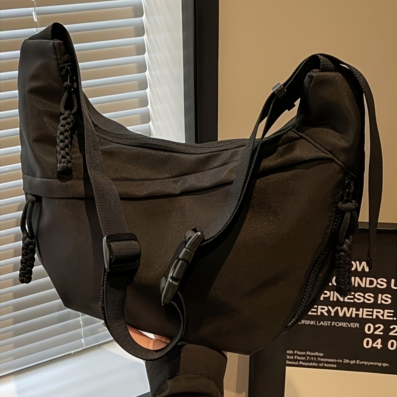 TEMU 순수 컬러 나일론 원단 싱글숄더백 지퍼 레이지 윈드 캐주얼 다용도 가방 여성용 출근 대용량 크레센트백