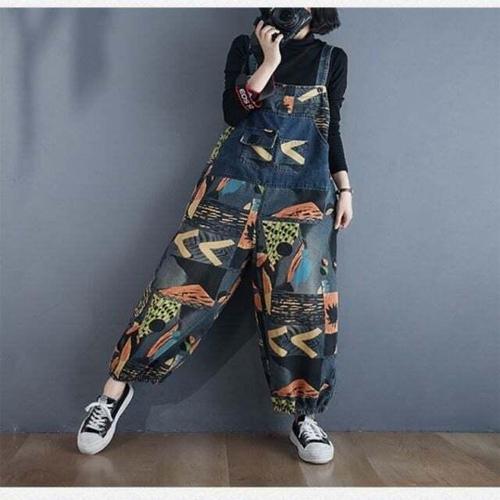 [셀럽하우스]데님멜빵바지 ICFY2439 데님원피스 프린팅 청멜빵바지 EA 멜빵