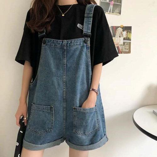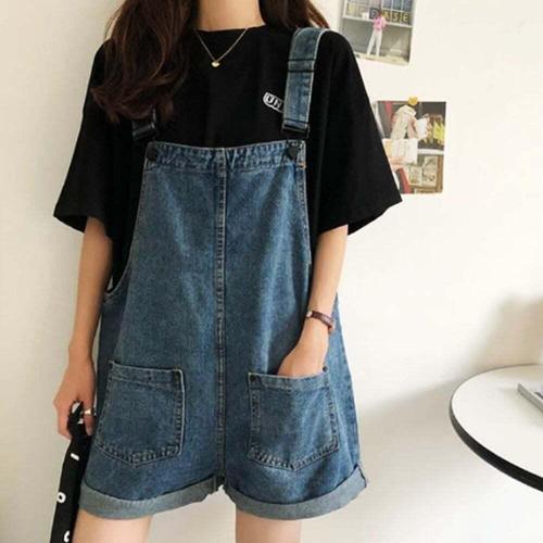 데님멜빵반바지 중청 와이드핏 귀염 코디 여사친룩 cPd6+9Iin