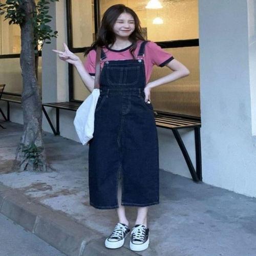 [옷자락]여자 데이트룩 오버롤 캥거루 멜빵 코튼 미니원피스