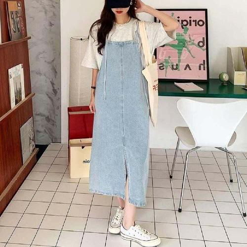 [엄지척]진청원피스 청청셋업 데님 롱 멜빵치마 마실용 원피스_19861418_667501