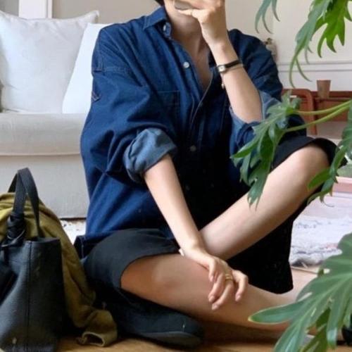 [다잇템][다잇템] 여자 백라벨 빅사이즈 키치무드 데님 면원단 주머니 남방_23226954_588872