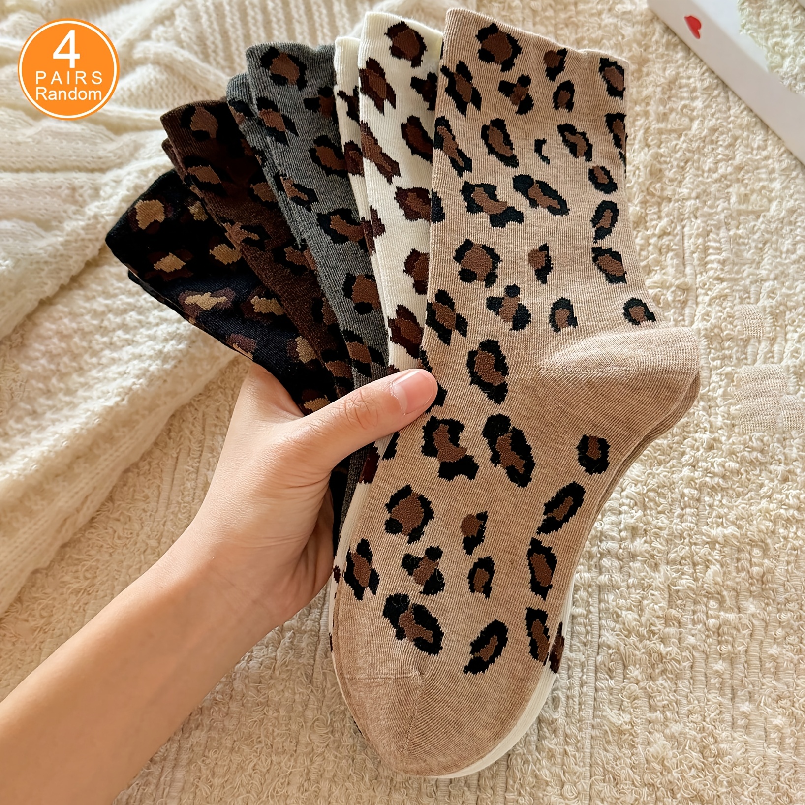 TEMU 랜덤 4켤레 여성용 프린트 패션 미드 캐프 양말, 부드럽고 편안한 통기성 사계절 다용도 데일리 아웃핏
